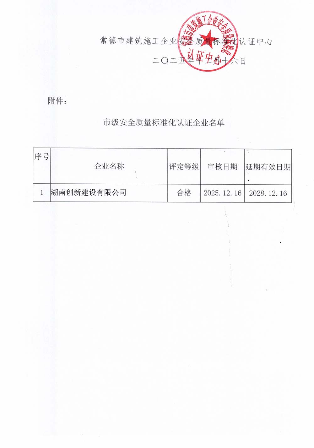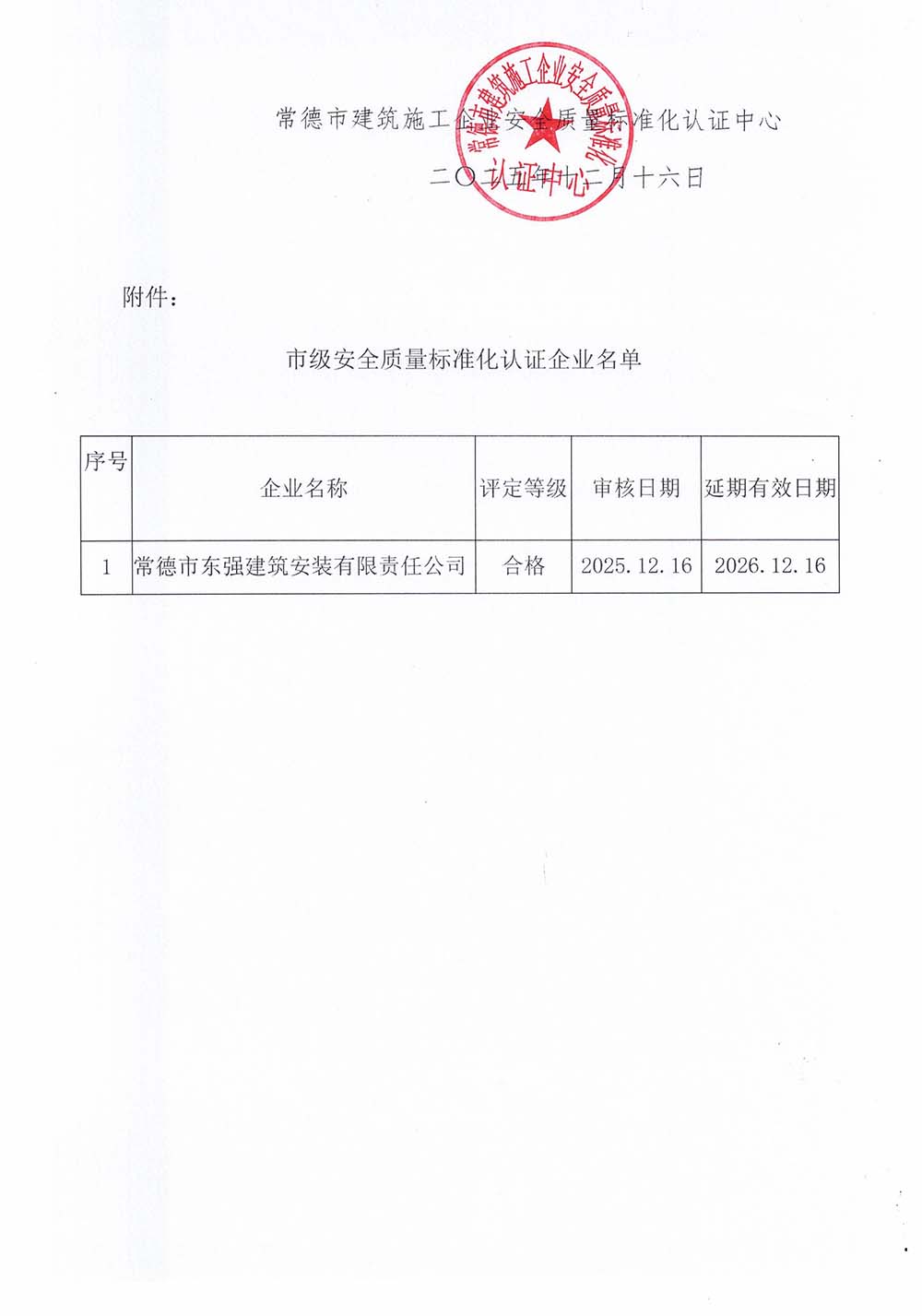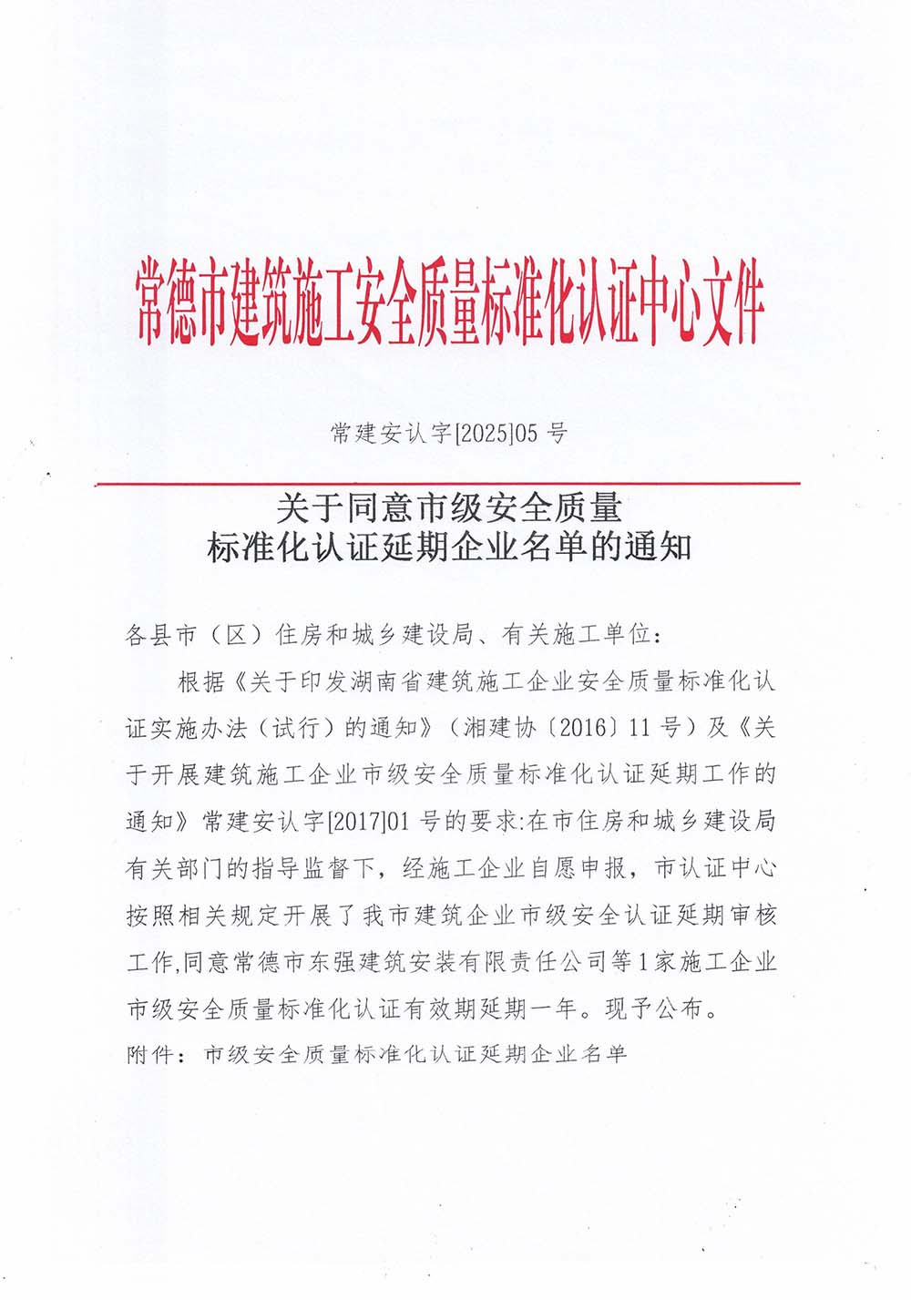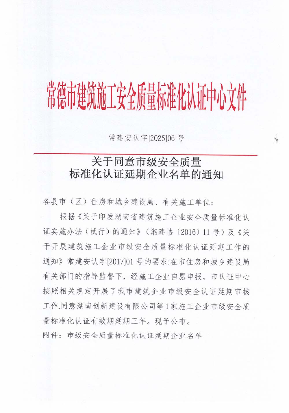 关于同意市级安全质量标准化认证延期企业名单的通知