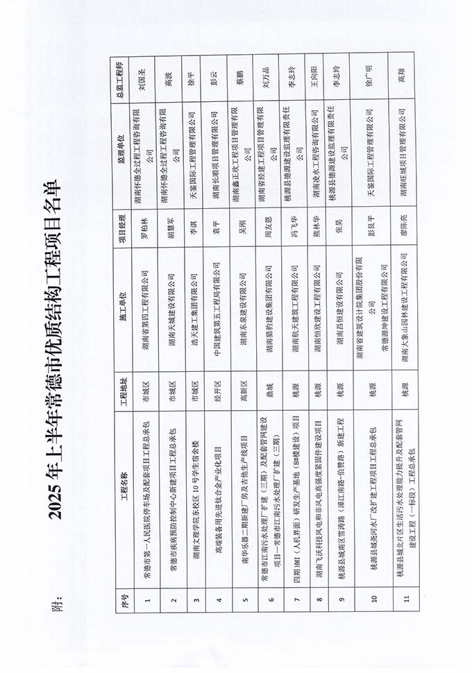 关于公布2025年上半年常德市优质结构工程名单的通知